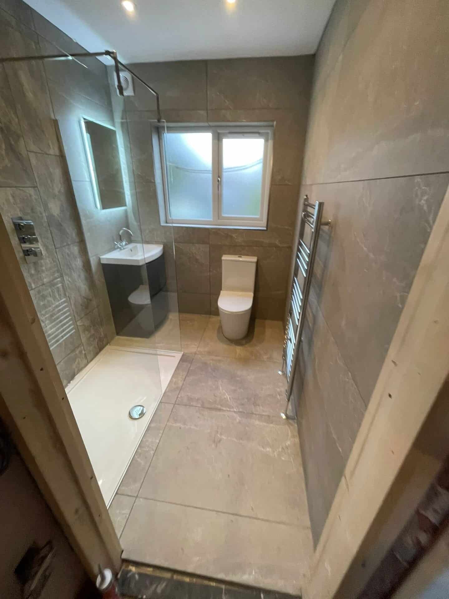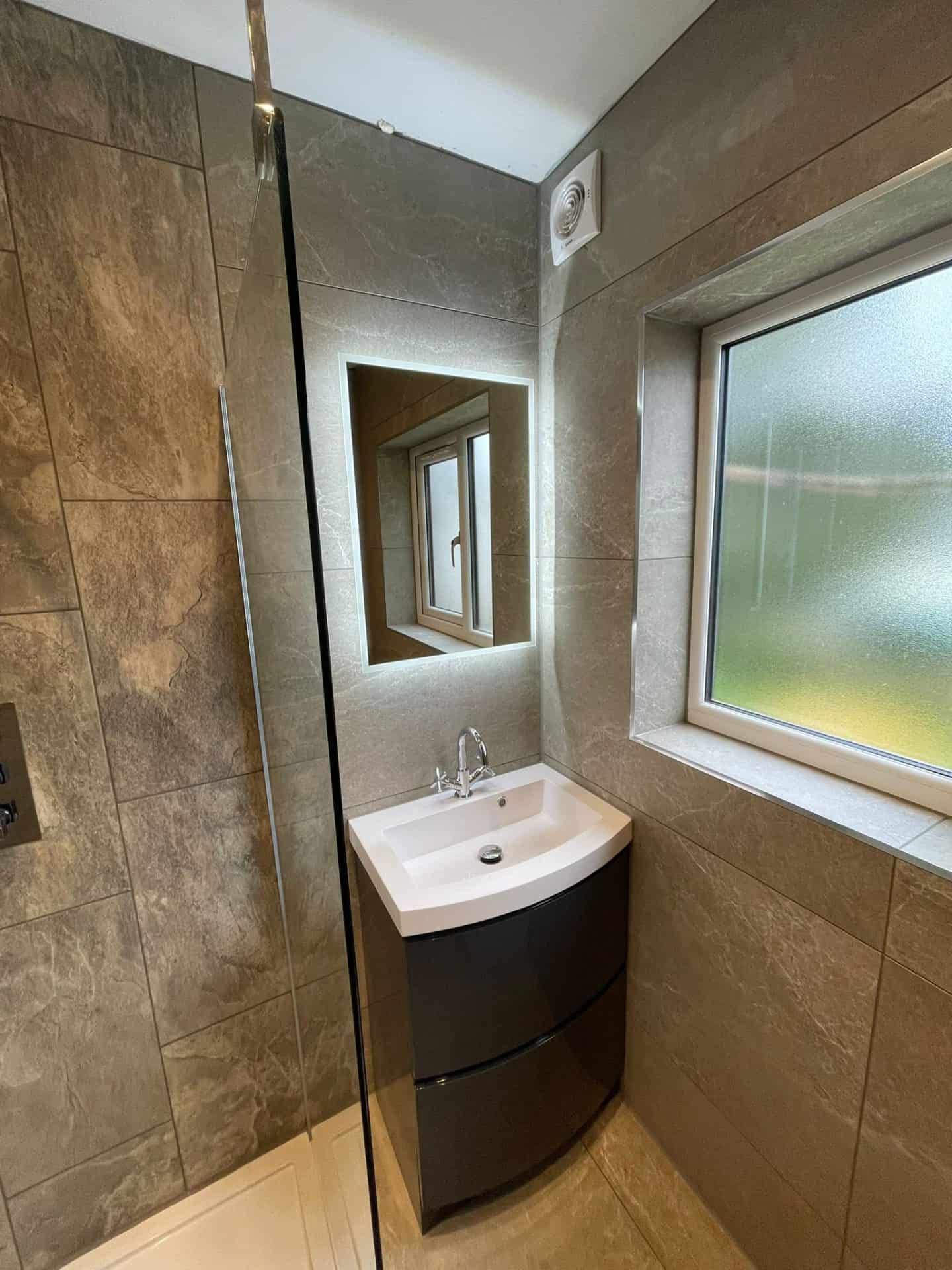 Comfort was also a priority. We added electric underfloor heating, so the space feels warm underfoot from the moment you step inside. A new soil stack was fitted to accommodate all concealed pipework and to allow us to reposition the toilet for the most practical layout. An LED mirror was also installed, bringing in both style and good lighting for daily use.